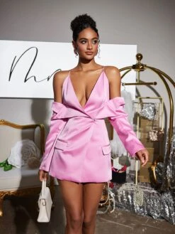This Vila Plunge Draped Satin Blazer is the perfect addition to your wardrobe, adding a touch of elegance and sophistication to any outfit. The plunging neckline and draped design create a flattering silhouette, while the satin fabric adds a luxurious feel. Elevate your style with this must-have blazer!