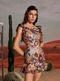 Add a touch of floral elegance to your wardrobe with the Viveka Flower Sequin Mini Dress. This dazzling dress is adorned with delicate sequin flowers, creating a stunning and unique look. Its mini length is perfect for showing off your legs and the sequins add just the right amount of sparkle. Stand out at any event with this must-have dress!