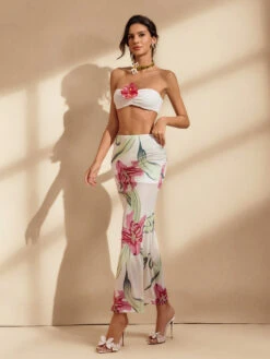 Elevate your summer wardrobe with the Waelyra Strapless Floral Skirt Set. This effortlessly chic ensemble features a flattering strapless top paired with a flowy floral skirt, perfect for warm days and evening outings. Designed to highlight your silhouette while keeping you comfortable, it’s an ideal choice for garden parties, brunches, or casual gatherings. Embrace feminine elegance and turn heads wherever you go with this versatile and stylish set.