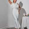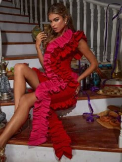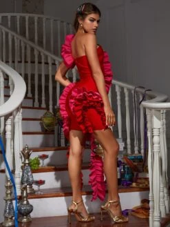 Elevate your style with the Yemi One Shoulder Ruched Bandage Dress! The one shoulder design and ruched detailing create a unique and eye-catching silhouette that will make you stand out. Made with high-quality bandage material, this dress hugs your curves for a flattering fit. Perfect for any special occasion, this dress is sure to make you feel confident and chic.